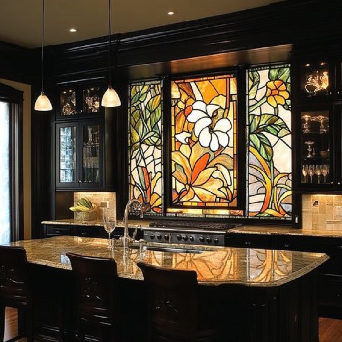 In our time, stained -glass windows are used to decorate bedrooms, children’s rooms and living rooms. Stained glass windows in the interiors of kitchens look very harmonious. The use of decorative glasses gives not only aesthetics, but also the practicality of life. Stained glass windows of modern types differ in strength and durability, as they are made using modern technologies that provide glass hardening.